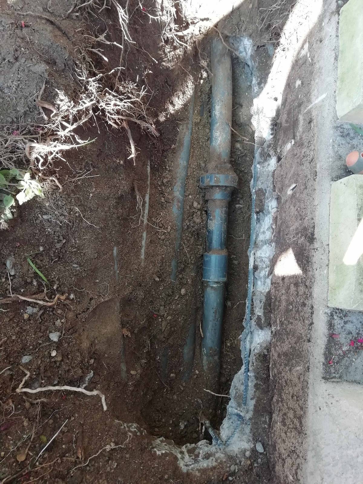 Suite à une intervention pour la recherche d'unefuite d'eau sur la canalisation d'une piscine béton à Vence dans les Alpes-Maritimes, nous avons effectué (Hydrofuite) une réparation sur le réseau de refoulement ce qui consiste à ouvrir la dalle béton sur la zone de localisation.