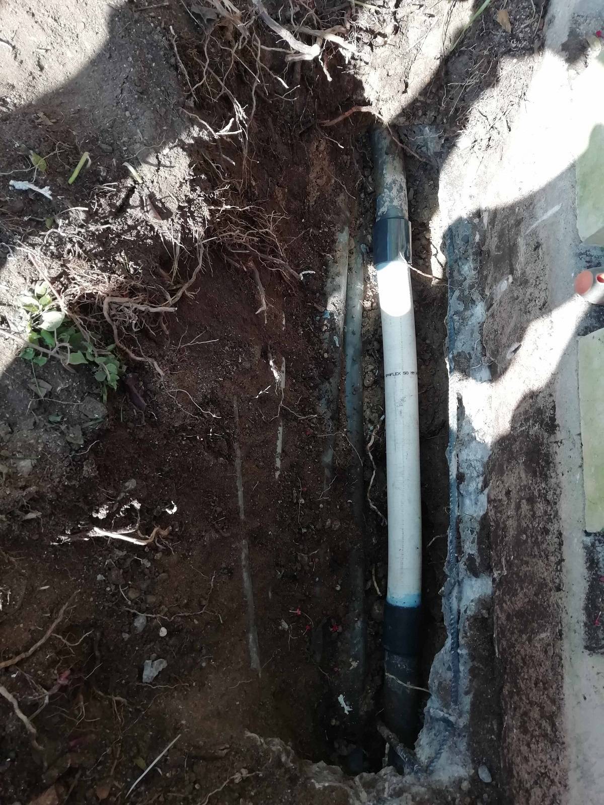 Une fois la fuite identifiée, nous avons coupé le tube PVC rigide et nous l'avons remplacé par un tube PVC souple de même diamètre.